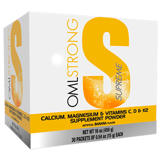 OML Strong: Malteada sabor plátano, que por su contenido de calcio, vitamina D y K2, favorece el desarrollo de huesos y dientes.