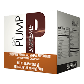 OML Pump: Malteada sabor cookies & cream con ingredientes que pudieran favorecer a disminuir el desgaste por agotamiento físico.