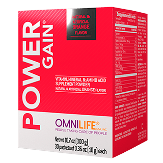 Power Gain: Producto nutricional, sabor naranja, que contiene arginina, colina, glicina, vitaminas y minerales. La arginina es un aminoácido semiesencial que está presente en los procesos naturales de los tejidos del cuerpo, por lo que puede contribuir en el tono muscular, además interviene en la formación del óxido nítrico, el cual coadyuva al desarrollo de las acciones vasodilatadoras.